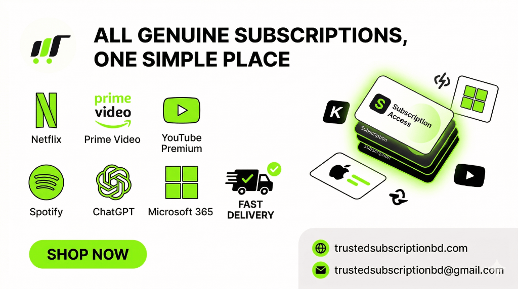 আমাদের মূল লক্ষ্য হলো এই সমস্যার সমাধান করা। আপনার কাছে ইন্টারন্যাশনাল কার্ড না থাকলেও কোনো সমস্যা নেই! এখন খুব সহজেই আমাদের মাধ্যমে বিশাল ডিসকাউন্টে আপনার প্রয়োজনীয় সকল প্রিমিয়াম সাবস্ক্রিপশন কিনতে পারবেন।
